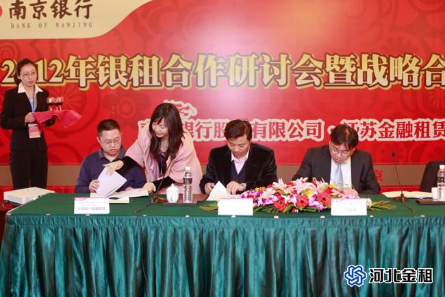 此次會(huì)議,我公司與南京銀行在綜合授信、資金融資、應(yīng)收租賃款回購、聯(lián)合融資、理財(cái)資產(chǎn)推薦、客戶推薦、投行業(yè)務(wù)等方面達(dá)成了合作共識(shí),為致力于建立長期、穩(wěn)定、互利、共贏的全面戰(zhàn)略合作伙伴關(guān)系,不斷提升雙方的合作深度與廣度,公司總裁徐敏俊與南京銀行副行長禹志強(qiáng)在簽字儀式上簽署了《戰(zhàn)略合作協(xié)議》。