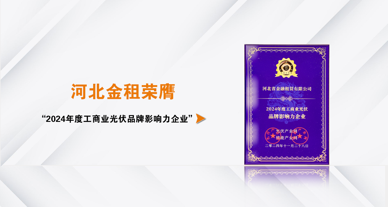 在同期舉辦的「TOP 50」2024光伏&儲(chǔ)能創(chuàng)新榜榜單發(fā)布暨頒獎(jiǎng)典禮上,河北金租憑借在工商業(yè)分布式光伏產(chǎn)業(yè)領(lǐng)域的優(yōu)秀表現(xiàn),成功斬獲“2024年度工商業(yè)光伏品牌影響力企業(yè)”榮譽(yù)。