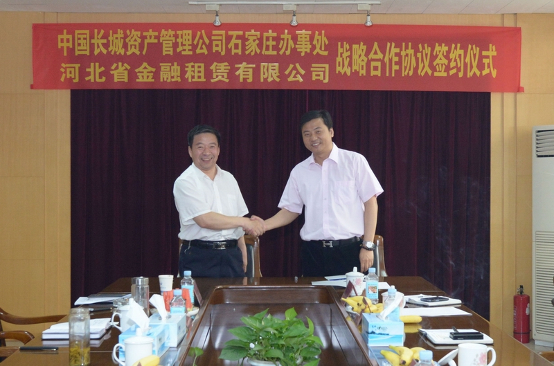 2013年5月31日,為推動(dòng)各領(lǐng)域業(yè)務(wù)合作,促進(jìn)雙方共同發(fā)展,中國長城資產(chǎn)管理公司石家莊辦事處總經(jīng)理齊銀庚一行與公司總裁徐敏俊及各位領(lǐng)導(dǎo)進(jìn)行了戰(zhàn)略合作洽談會(huì)。在會(huì)上,雙方領(lǐng)導(dǎo)本著平等互利、優(yōu)勢互補(bǔ)、資源共享的原則友好協(xié)商,決定建立全面業(yè)務(wù)合作關(guān)系。并就風(fēng)險(xiǎn)控制、客戶拓展、資產(chǎn)業(yè)務(wù)等方面進(jìn)行了廣泛的交流,對彼此未來的合作前景和方向深入地交換了意見。雙方將依托各自的行業(yè)特點(diǎn)和業(yè)務(wù)范圍,在資產(chǎn)管理、信托業(yè)務(wù)、金融租賃、融資業(yè)務(wù)等方面進(jìn)行全面合作。努力實(shí)現(xiàn)優(yōu)勢互補(bǔ)、大力促進(jìn)協(xié)同發(fā)展。當(dāng)天雙方正式簽署了《戰(zhàn)略合作協(xié)議》,確立了合作關(guān)系。